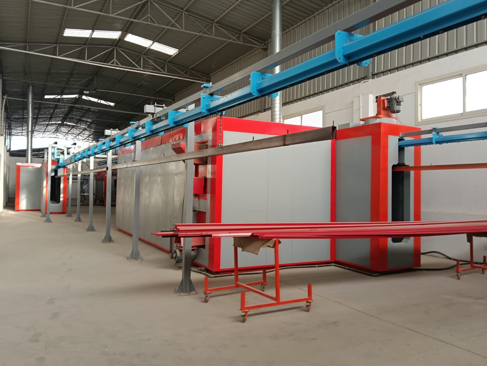 Our factory is equipped with integrated production lines for engineering industries, providing advanced solutions for manufacturing aluminum and PVC profiles with the highest standards of quality and precision. Additionally, we have a specialized spraying cabin for profile treatment and finishing, ensuring superior performance and durability of the final products. Moreover, we specialize in manufacturing all types of pedestrian access machines, utilizing the latest technologies to meet the needs of various residential, commercial, and industrial projects.